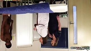 CFNM IR nurses in uniform and high-heeled slippers suck ebony cock in 3way