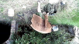 Brunette curvaceous lady with plump caboose pulls down her black panties