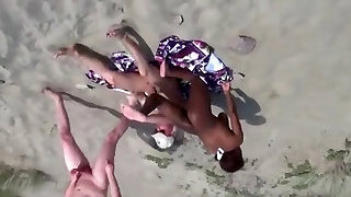 Black teen in interracial 3 way at the beach