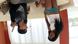 Suntanning black girl gets wet around her girly-girl acquaintance who is a fan of strapons and sixty nine