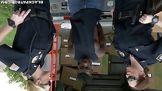 Caucasian police femmes fucks black scofflaw in threesome