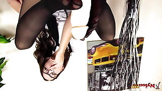 Schoolgirl JJ Cruz gets fucked by two huge black sausages