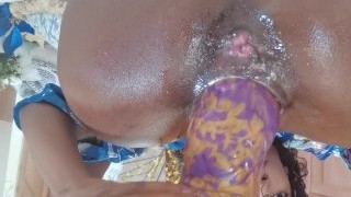 Huge fake ebony spunk-pump penetrating her anal hole to get her off