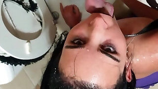 Emo slut predominated, pissed on, slapped and sucking cock