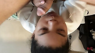 Slut sucking a cock, while shaking her big black ass, imagining another cock nailing her rear entrance