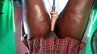 My Pussy is frolicking Peak-a-boo under my little Miniskirt - Fuck machine eating my Fat Cunt