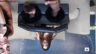 Footjob by Step Sister in 20 den Black Pantyhose - Jizm on Feet