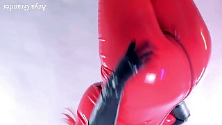 Latex Catsuit, Rubber Fetish Video Ebony and Red Fetisch