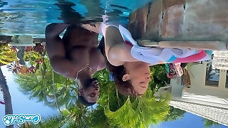 Jenna Starr having joy while deep-throating a black cock in the pool