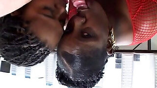 Hot ebony with natural tits rides black cock switch sides cowgirl