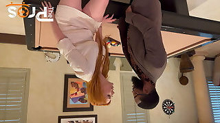 August Skye wearing white lingerie riding a manmeat in reverse cowgirl