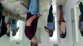 Teen brunette has bi-racial threesome with black fellows and does anal
